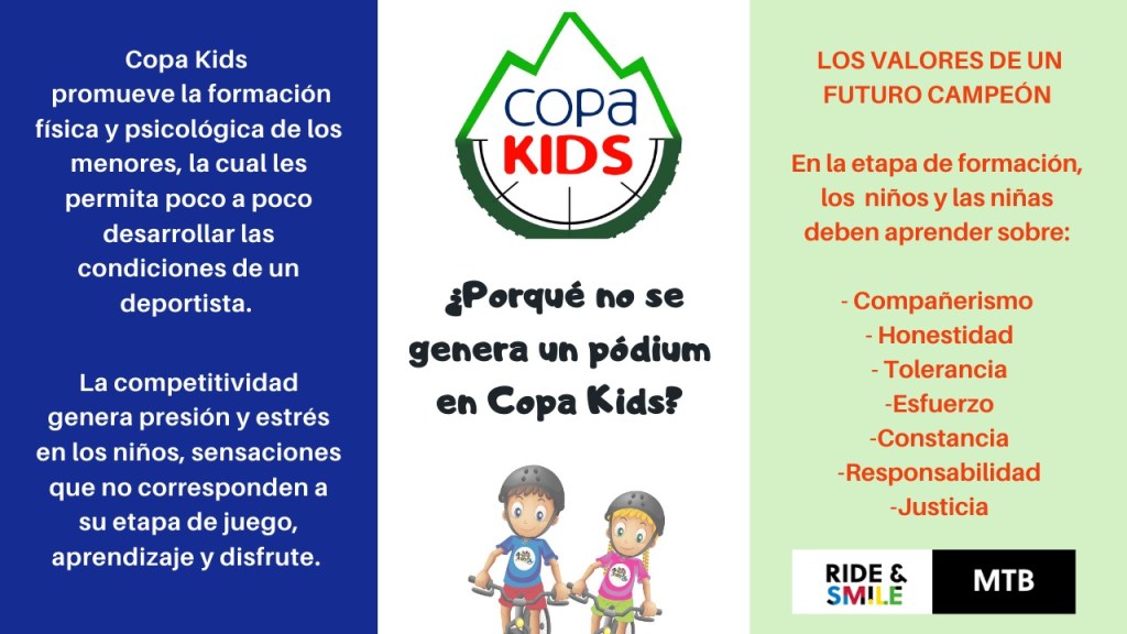 La Copa KIDS vuelve con su mismo enfoque, como un evento promocional para la población menor de 12 años para el disfrute del ciclismo de montaña como un espacio de un proceso de formación.